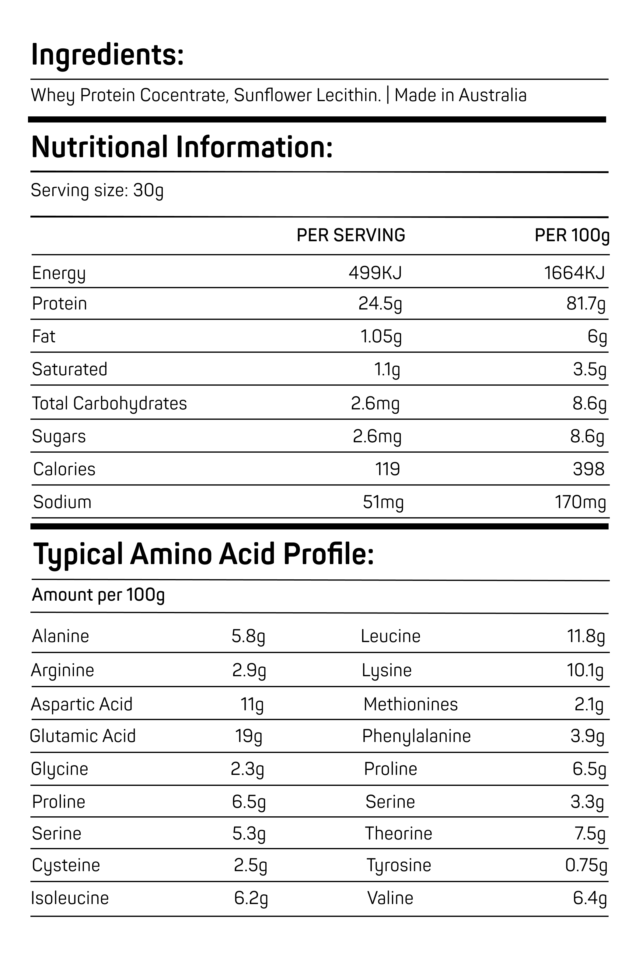 Experience the ultimate in All Natural Australian-made Whey Protein Concentrate– the perfect blend of taste, quality, and performance. Fuel your body with the best!