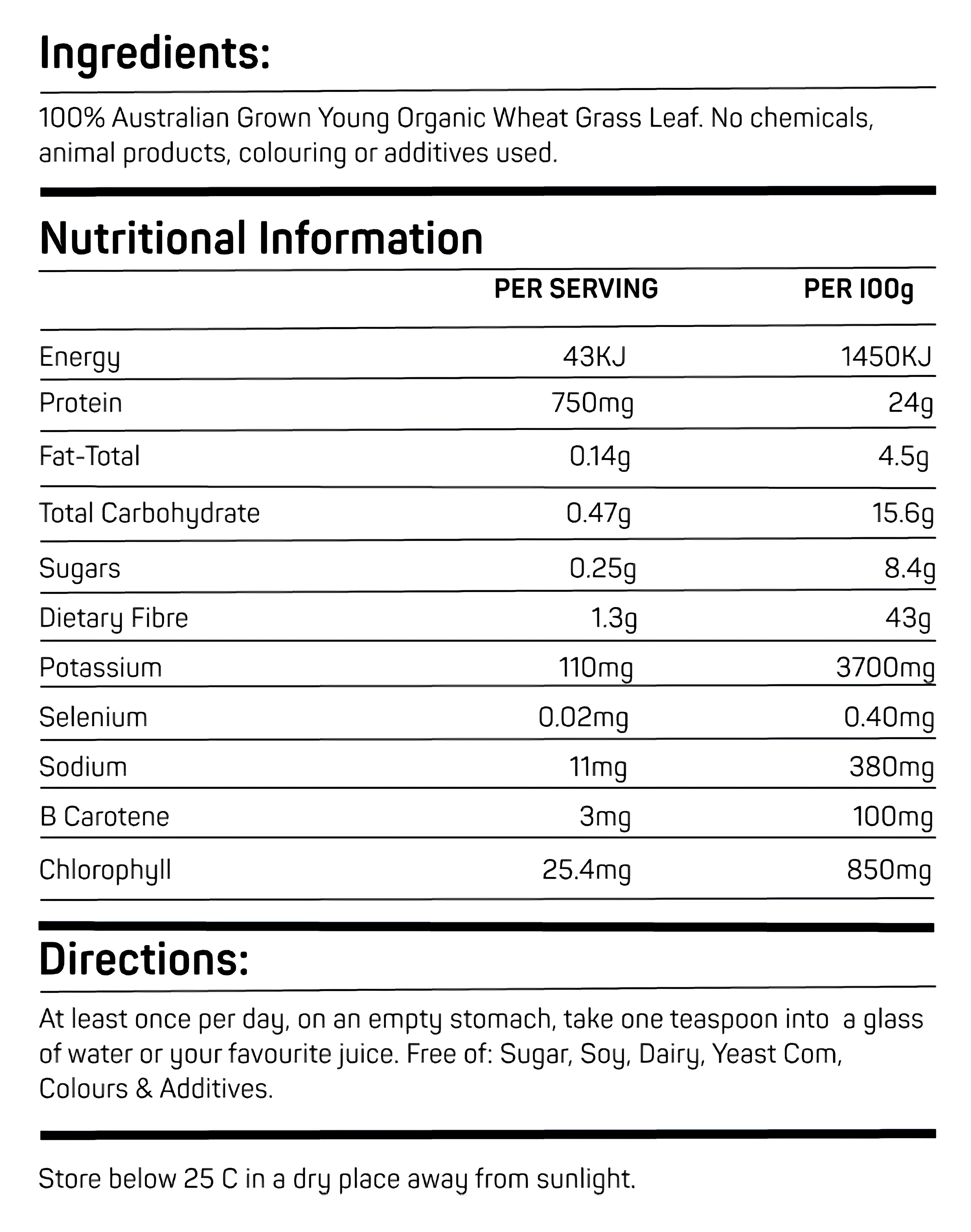 Unlike many wheatgrass powders on the market, this whole-leaf wheatgrass is not juiced. Juicing removes the natural plant fibre and often requires chemical preservatives to maintain freshness. Instead, our wheatgrass is left in its natural state, ensuring the complete range of nutrients remains intact.