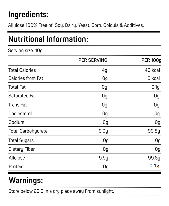 Allulose is naturally found in small amounts in fruits like figs and raisins, and it brings the taste and texture of sugar, with none of the drawbacks. Whether you’re on a keto diet, managing blood sugar levels, or just looking for a healthier sugar alternative, allulose is the perfect choice. It’s sweet, pure, and offers all the benefits you need for a more balanced lifestyle.