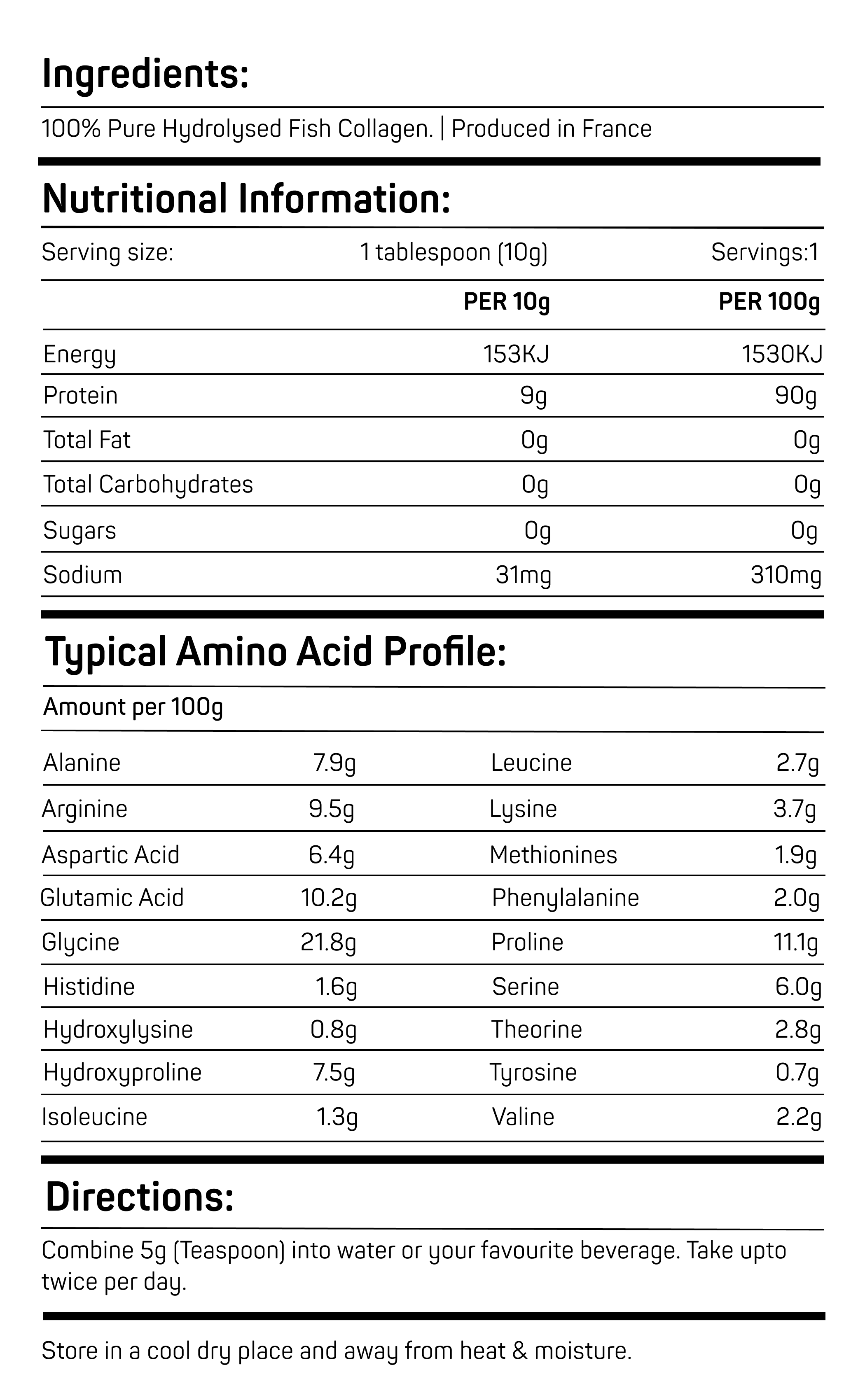 - 100% pure collagen peptides of marine origin.